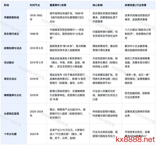 2014年3月,国务院批准首批民营银行试点,标记着民营银行认真参加措施化发展阶段。2016年监管策略常态化,民营银行数目增至19家,新增银行如新网银行(四川)、众邦银行(武汉)、苏商银行(江苏)等。2020年后监管趋严,新增执照暂停,行业参加存量竞争与结构改变期。