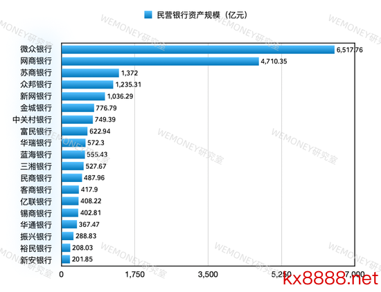 从2024年数据来看,微众银行以6,517.76亿元金钱总数稳居榜首,十分于尾部10家银行金钱总和的2.5倍。其21.7%的金钱增速虽较往年放缓,但仍大幅率先行业均值,透露诞生态场景的捏续赋能。网商银行以4,710.35亿元位列第二。